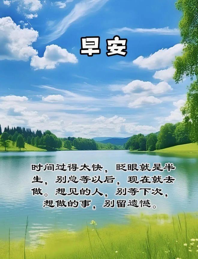 晨起听鸟鸣,暮归赏夕阳。生活是一场旅程,不必急于到达终点,只需享受沿途的风景。别因忙碌忽略了健康,别因压力忘记了快乐。学会在忙碌中寻找平衡,在困境中寻找希望。愿你在新的一天里,保持健康,珍惜时光,用行动创造美好,用心灵感受幸福。~